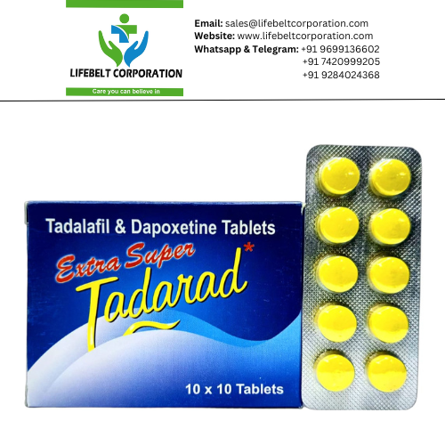 Extra Super Tadarad Tablet is a combination of two medicines: Tadalafil and Dapoxetine which treat male erectile dysfunction and premature ejaculation. Tadalafil is a phosphodiesterase type 5 (PDE 5) inhibitor which works by increasing blood flow to the penis during sexual stimulation and enables its erection following sexual stimulation.