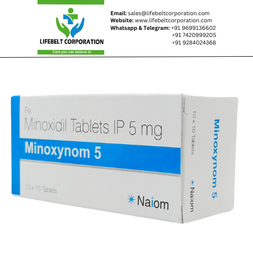 Minoxynom Minoxidil 5 mg Tablet belongs to the vasodilator class of drugs. In the treatment of hair loss, it is used. It reduces the rate at which hair loss occurs. By widening the blood vessels, this medication increases blood flow to hair follicles and encourages hair growth