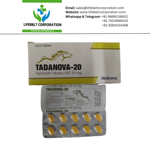 Tadanova Tadalafil 20 mg Tablet is used to treat erectile dysfunction (ED) in men and pulmonary arterial hypertension (PAH). It increases blood flow to the penis to help men get an erection. In PAH, it relaxes or widens the blood vessels inside the lungs, which reduces blood pressure in the lungs.